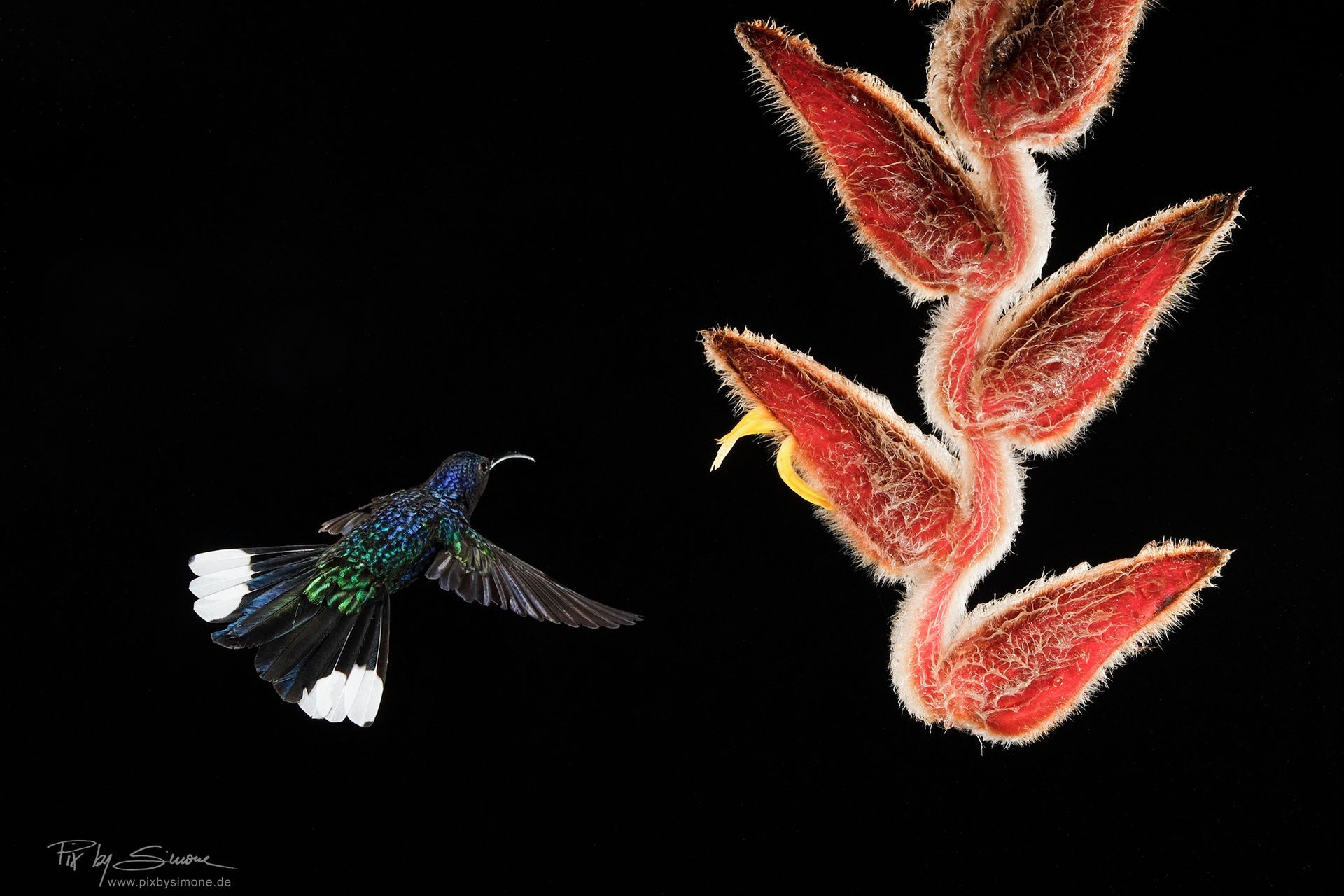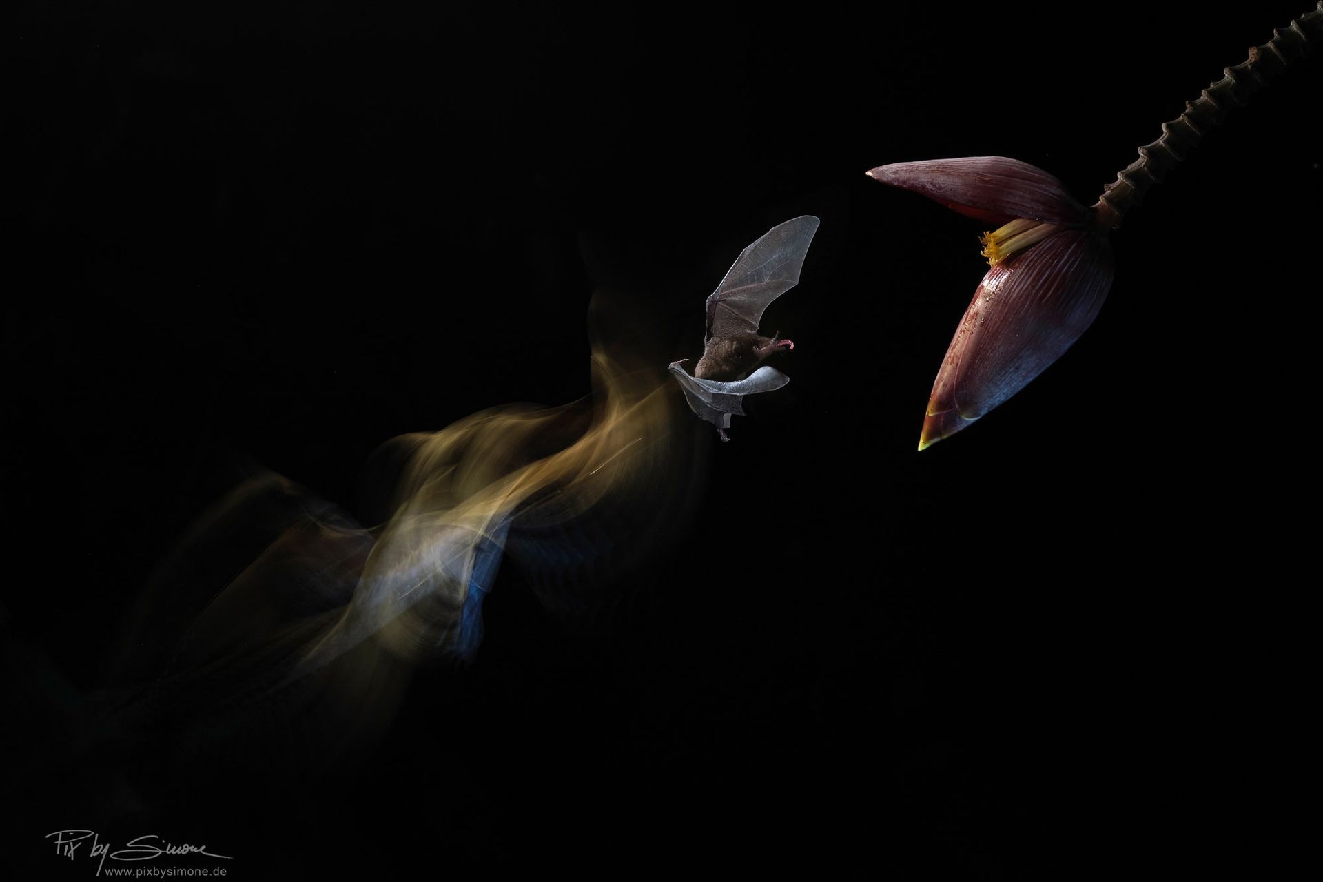 Ein Highlight waren für mich die Fledermäuse! In der Nacht sind wir auf eine Lichtung im Wald gegangen, wo wir Lichtschranke, Blitze und unsere Stative in Position brachten um die Nachtschwärmer beim Nektarschlecken ablichteten. Um uns herum leuchteten und tanzten die Glühwürmchen. Es wurden wunderbare Bilder, auf denen man die Spuren des Fluges erkennen kann, die durch 2farbiges Licht (blau und gelb) wunderbare Schlieren ins Bild zaubern.