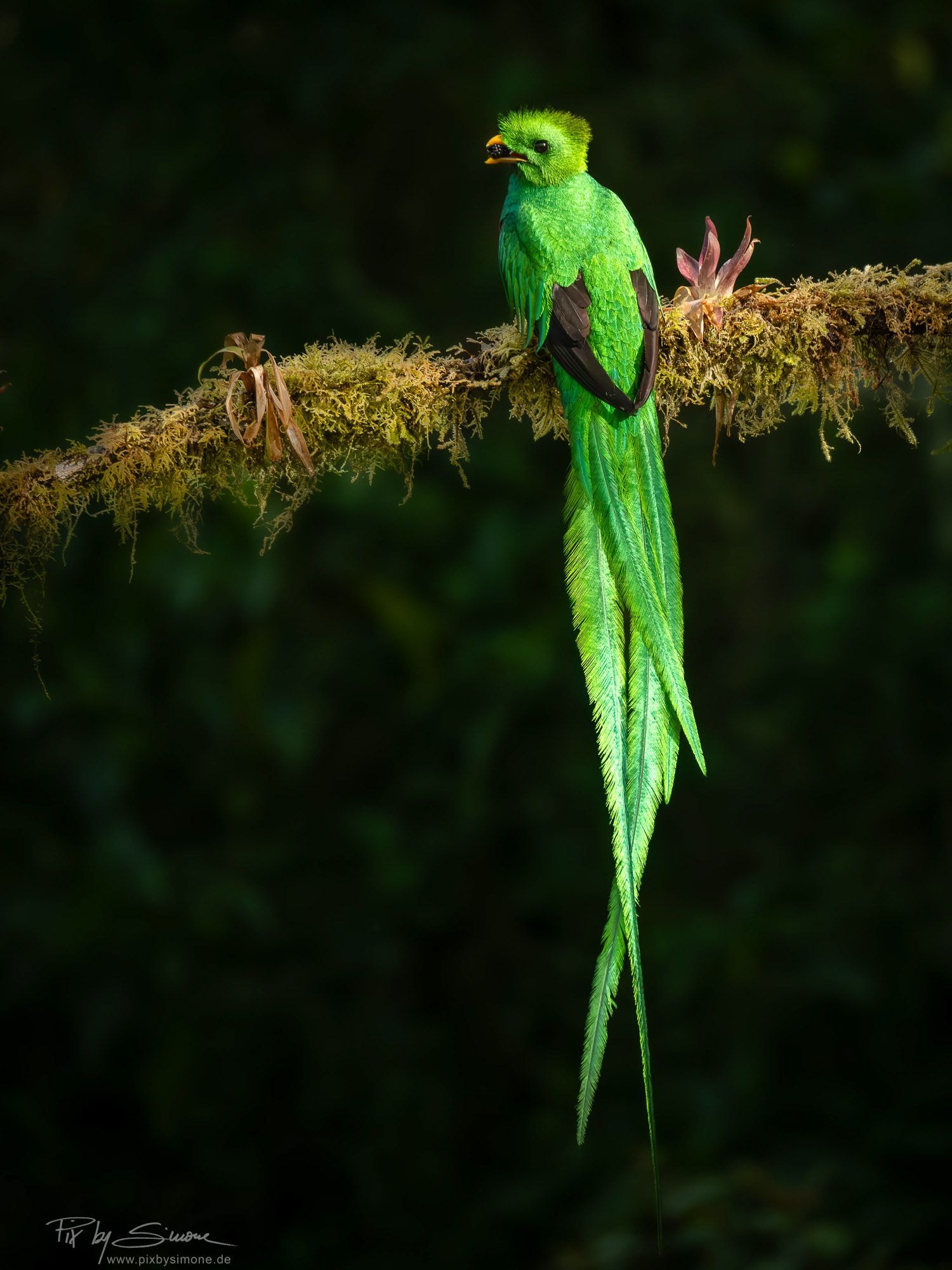 Gleich am Anfang der Reise, oben im Nebelwald wo es am frühen Morgen verdammt kalt war, konnten wir den wunderschönen Quetzal fotografieren. In der Nähe seines Nestes, das in einem abgebrochenen Baumstamm war, hatten wir die Gelegenheit das Quetzal-Paar beim Versorgen ihrer Brut zu beobachten.